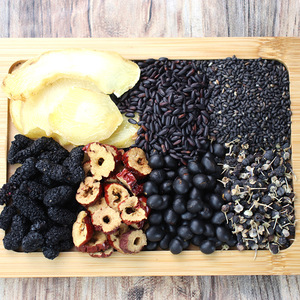 黒クコ、黒豆、黒米、黒ごま、ナツメヤシ、桑の実、タデ