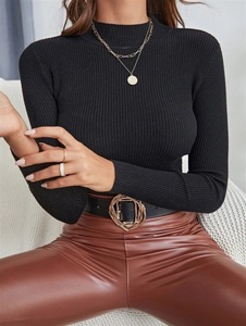 国境を越えた対外貿易欧米の秋冬の薄いタイプの半高襟の修身セーターのアマゾンの純色の簡単な底のニットの女性