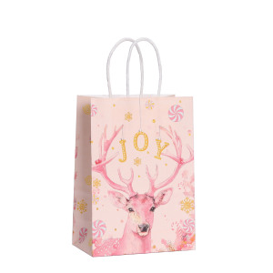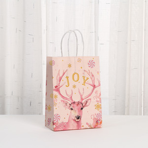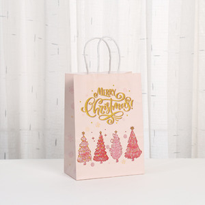 ショッピングバッグクラフト紙袋パーティーキャンディギフト袋卸売り外売り袋クリスマス手提げ袋ピンク包装袋