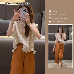 一枚/夏の洋風ファッション独特のユニークな木の耳元の花のシャツの高腰のカジュアルなズボンの塩系は街の女性を揚げます。