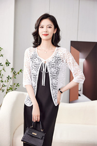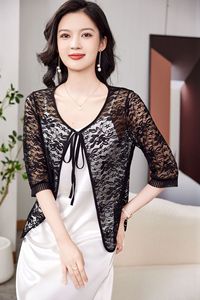 レースの小さいショールのカーディガンのコートは夏にスカートのチャイナドレスの外でお母さんの薄い通気性の日焼け止めのカーディガンに乗ります。