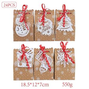 S-877 # クリスマスクラフト紙箱(24個入/麻ひも+タグ付き)