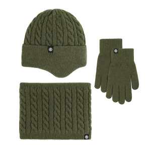 冬の首を囲んで保温する三点セットとベルベットの屋外で耳を厚くして帽子をかぶる手袋三点セット