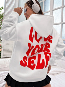 クロスボーダー貿易レディースフリースパーカー新作バックレタープリントフード付きスウェットシャツ原宿トップス韓国風