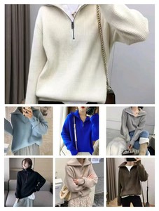 越境年秋冬新作ファスナーセーターニット女性はゆったりしています。