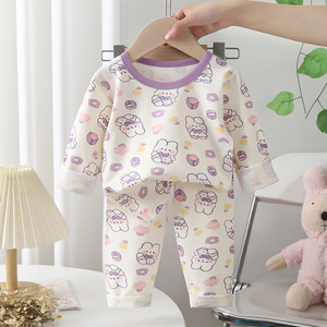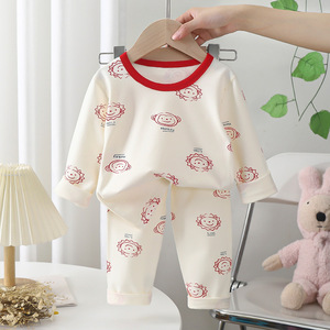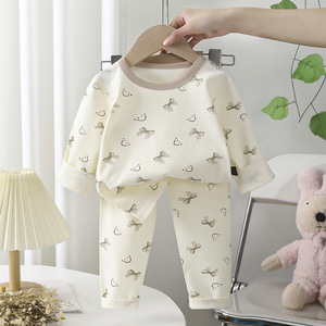 新型子供用下着セット男女A類純綿無骨莱卡秋衣秋衣赤ちゃんパジャマ家服
