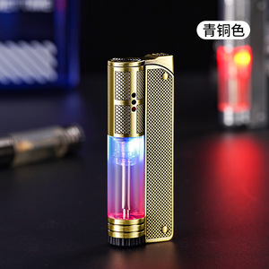 ZY117透明ガス倉庫カラーランプ発光直沖ライター屋外で火を起こす携帯ブルー炎シガー空気充填機
