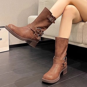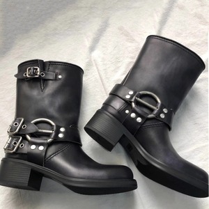 現物の新型iu家西部カウボーイブーツ2023春夏英倫風復古百合金属ボタン中筒マーティン