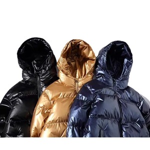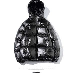 冬のファッションは、帽子付きの綿の服を厚くして、ゆったりとした明るい面の綿の服の男性の広い港の風の松のカジュアルなパンの服の綿入れの男性の服を着ます。