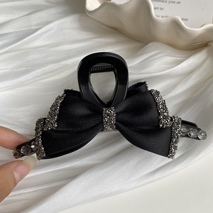 フレンチレトロなリボンラインストーンヘアピン、エレガントな気質、後頭部のシャーククリップ、軽い高級感と高級感のあるヘアグリッパーヘアアクセサリー