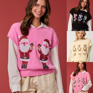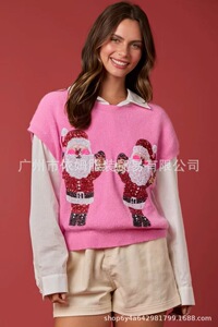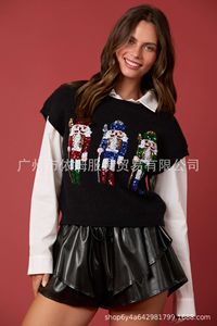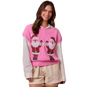 アマゾン秋冬新型越境欧米女装クリスマス衛兵スパンコールセーターベスト丸首ニット上着