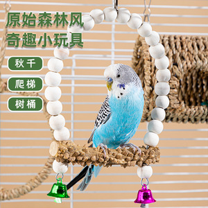 オウムのおもちゃはクロスボーダーのブランコのつり革のサンショウの木をかじって口をとがらせます。