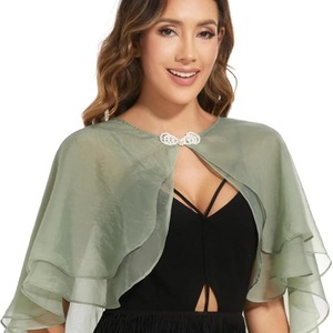 マントの夏の薄いタイプの欧米の対外貿易の新型の純色の丸首の金属は二重の辺の新婦のマントの女性の日焼け止めの服を掛けます。