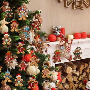 クリスマスのジンジャー人の木製のペンダントのセットのレトロな苦悩の風格のジンジャーケーキの人民代表大会の木製の装飾のクリスマスの家