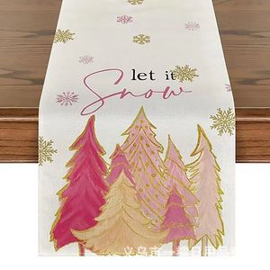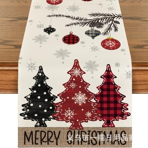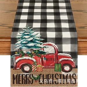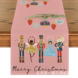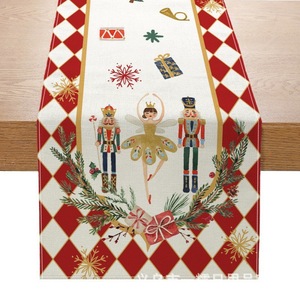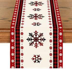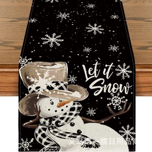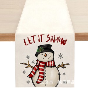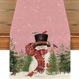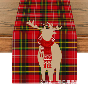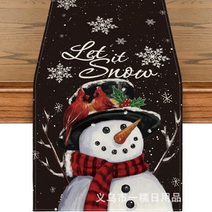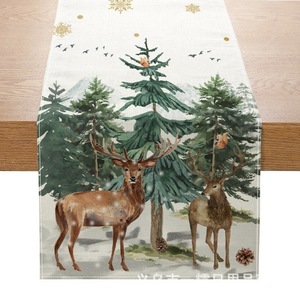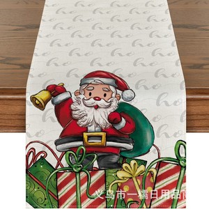 国境を越えて人気のクリスマステーブル旗サンタクロースヘラジカ雪だるま亜麻プリント客間茶卓装飾品