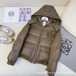 潮牌24秋冬新款美拉德时髦小短款刺绣logo面包连帽羽绒服百搭外套