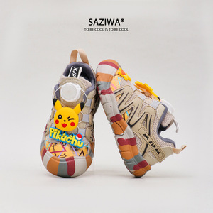 女の子の春と秋の運動靴の史迪仔のボタン靴の男の子のピカチュウのカジュアルな靴の子供の靴の百合の潮の2024