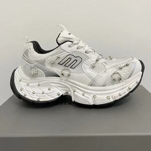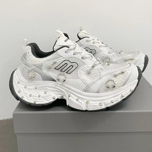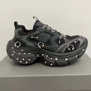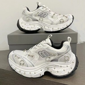 2025 春 10XL ダッドシューズリベットレディースキャットウォークスタイル多用途厚底高さ増加カップルカジュアルスポーツシューズレトロ