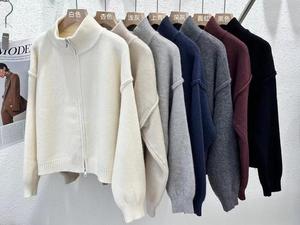 秋冬の新型シンプルな風がゆったりしていて、やせているセーターのコートの女性です。