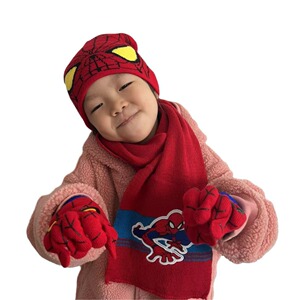 秋冬新型保温帽子手袋マフラー三点セットスパイダーマン漫画子供男の子女の子セット卸売り