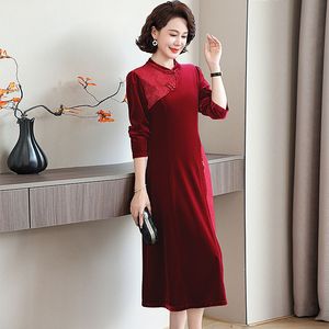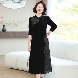 お母さんのおばあさんの中国式の気質の中高年の春秋の金のベルベットのワンピースの新型の改良のチャイナドレスのスカートの子供