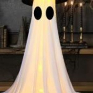 前の玄関に帽子をかぶって光る幽霊ハロウィーンは鬼の玄関の庭の幽霊ハロウィーンの装飾を立てます。