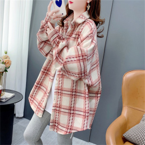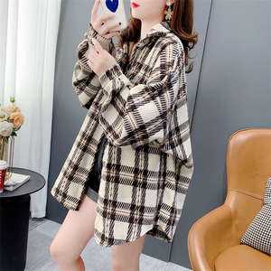 美ラードの小衆の復古のコートの女性の秋冬の服装の太っているmmの大きいサイズのゆったりしている保温の外は毛の格子の上着の潮を磨いて着ます。