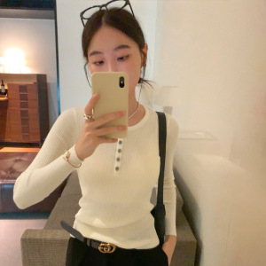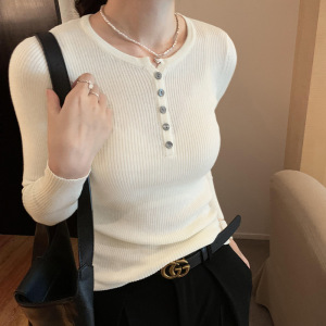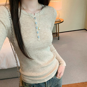半開襟ボタンの肩がスリムに見えます。長袖の中に底のニットの女性秋冬2024新作上着を掛けます。