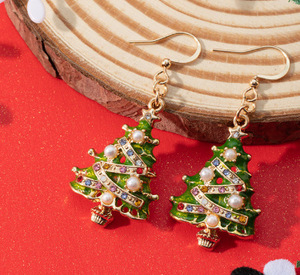 水滴クリスマスツリーのイヤリングの新商品2024の爆発的な雰囲気感クリスマスのピアスの周囲の顔のイヤリングの女性の高級感
