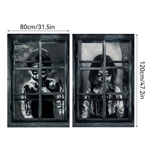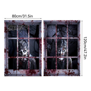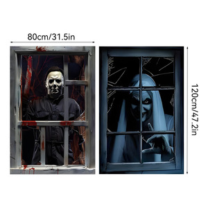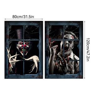 国境を越えたハロウィンホラー新作ウィンドウデコレーションとドアデコレーションの2点セット、幽霊と骸骨の屋内外パーティー用ポリエステル装飾