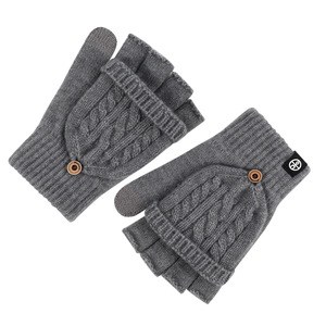 女性用冬用フリップトップ両用ハーフフィンガーグローブ、防寒性と暖かい学生用タッチスクリーングローブ、男性用の厚みのあるベルベット指なし手袋