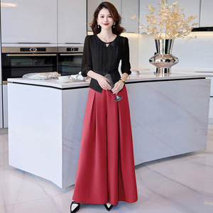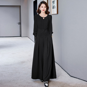 初秋のファッションスーツ女性2024早秋の新しい気質は洋気女神範職業広脚ズボンの2セットを着ている