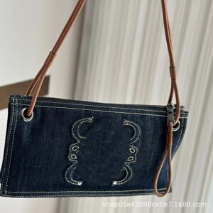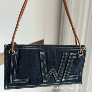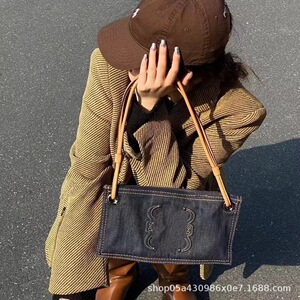クロスボディ海外中古レトロデニムパッチワーク刺繍柄ハンドバッグ横型トートバッグパッチワークキャンバスバッグ