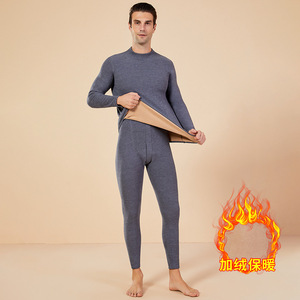高級羊毛裏地付き保温下着セット 女性用 秋冬新作 裏起毛 厚手 大きいサイズ ハーフタートルネック 男女兼用