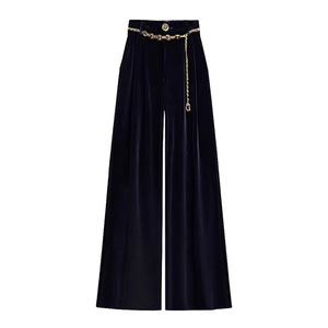 デザイン感チェーンの黒いベロアのワイドパンツ