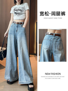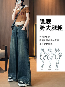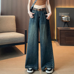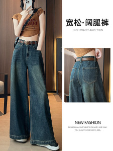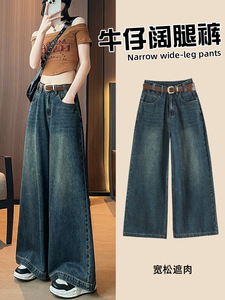 ギャルジーンズ女2024秋冬高腰広脚ズボン垂感直筒モップデニム広脚ズボンA1535