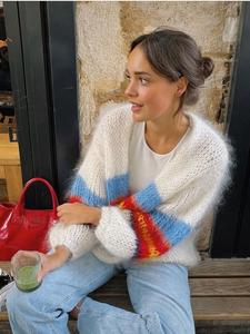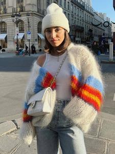 クロスボーダー2024秋冬新作ファッション衝突色ストライプ長袖カーディガン女性カジュアル街頭メリヤスゆるいセーター