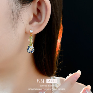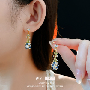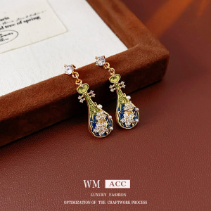中古ヴィンテージイヤリング、シルバー針、ダイヤモンド、ビバフラワー、イミテーションパールイヤリング、ファッショナブルなニッチハイエンドイヤリング