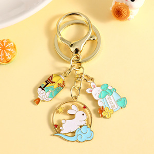 中秋節メタルペンダント - 雲を踏むウサギ + 吊り下げボックス