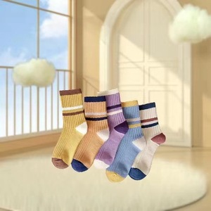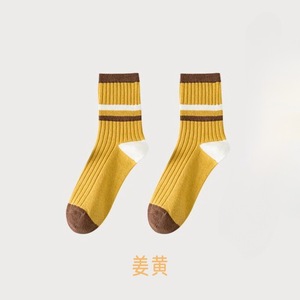 秋の中筒の靴下のカラーは虹の靴下のストライプの広い条の積み重ねの靴下の日本のinsの潮の金の百合の諸及び靴下をつなぎ合わせます。