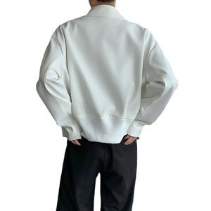 ホワイトcleanfitデザイン感コート男性行政ジャケットシンプルなジッパーカーディガン短いフライトジャケット