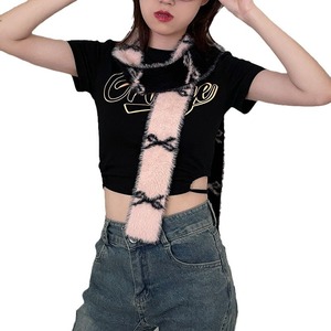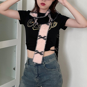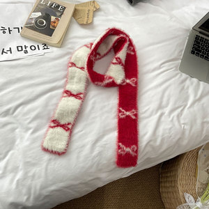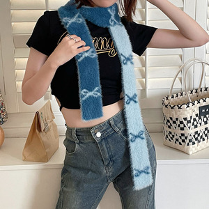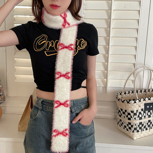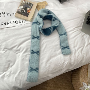 韓国版高級細くて狭いロングタイプのy 2k蝶結びのぬいぐるみのマフラーの女性秋冬の大衆の設計の凹形のギャル風