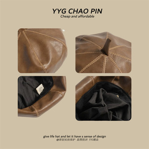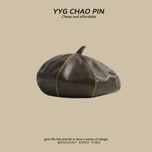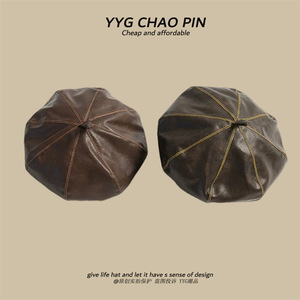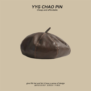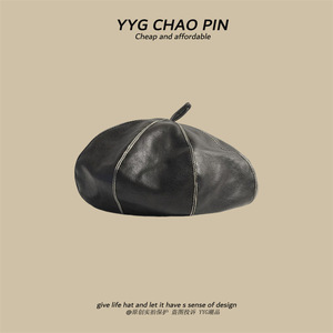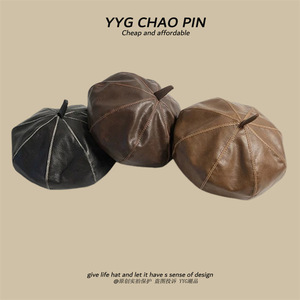 凌奇PUの皮の八角の帽子の女性の秋冬の英倫の復古の貝雷の帽子の韓国版の潮の皮の帽子の潮
