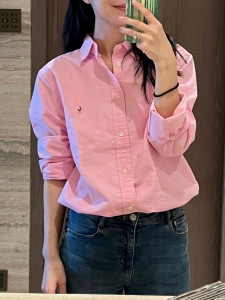 ハイバージョン RL ラフ無地カジュアルシャツ女性のカラフルなポニーロゴ刺繍トップファッションオックスフォードシャツ