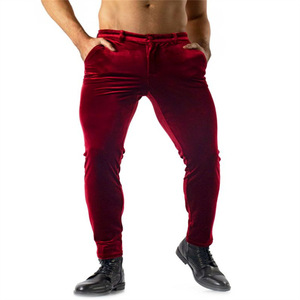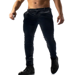 男性アマゾンの新型ファッション都市の純色の金のベルベットの修身の小さい足のズボン