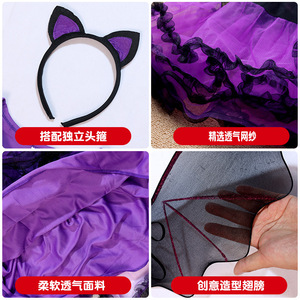 国境を越えた新型ハロウィーン魔女服装児童紫色コウモリ翼演出服装ドレス王女ワンピース