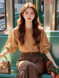 秋には高級感のある婦人服の洋風職業小香風カレーシャツのワイドパンツセットを着ています。