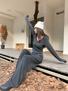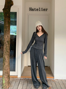 【工場現物】カジュアルスーツ女性秋長袖tシャツスリムスリムキャミソールワイドパンツ3点セット