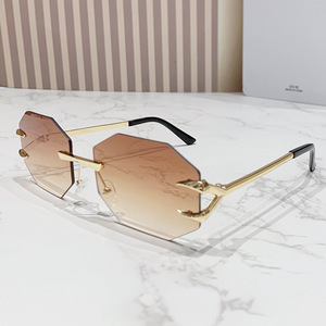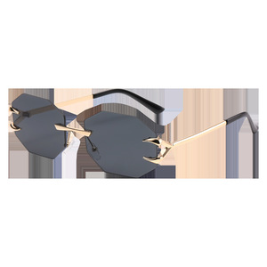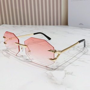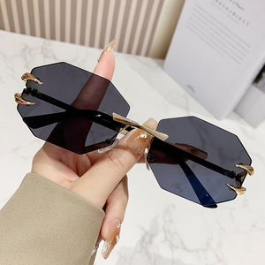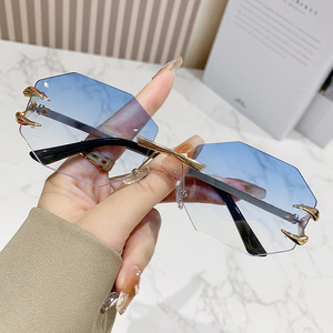 新品個性金属悪魔爪飾りサングラスinsレトロファッション多角形フレームレスエッジカットサングラス