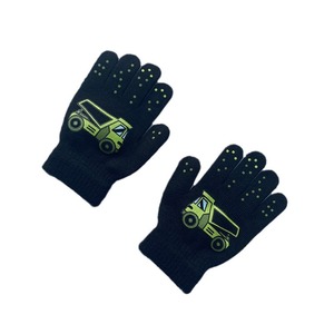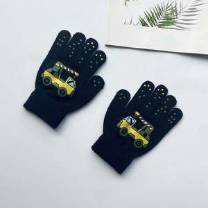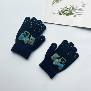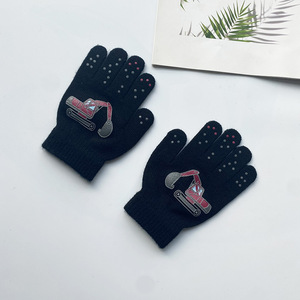 黑色工程车儿童手套秋冬户外保暖针织手套挖掘机手套通用运动手套